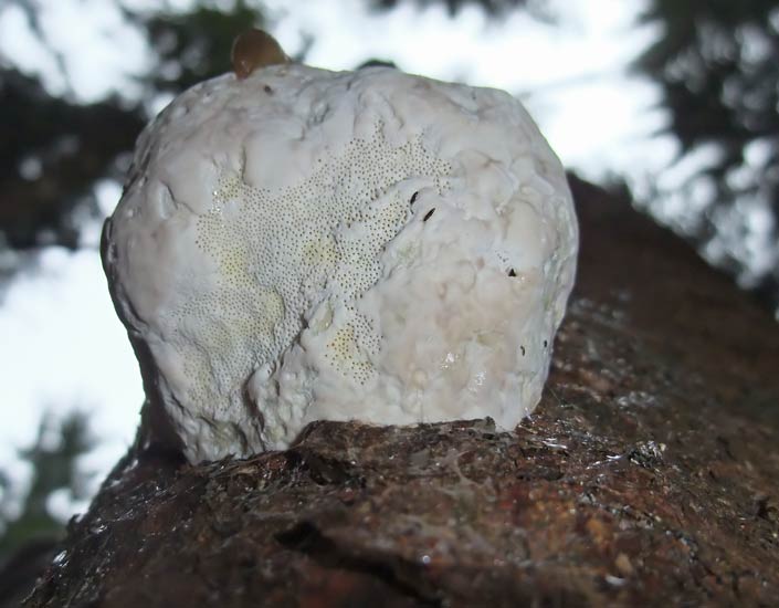 von unten betrachtet: ein junger rotrandiger Baumschwamm