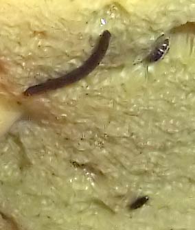 unbestimmte Insekten unter dem rotrandigen Baumschwamm (Fomitopsis pinicola) ... mehr über unsere → Insekten im Glemstal |