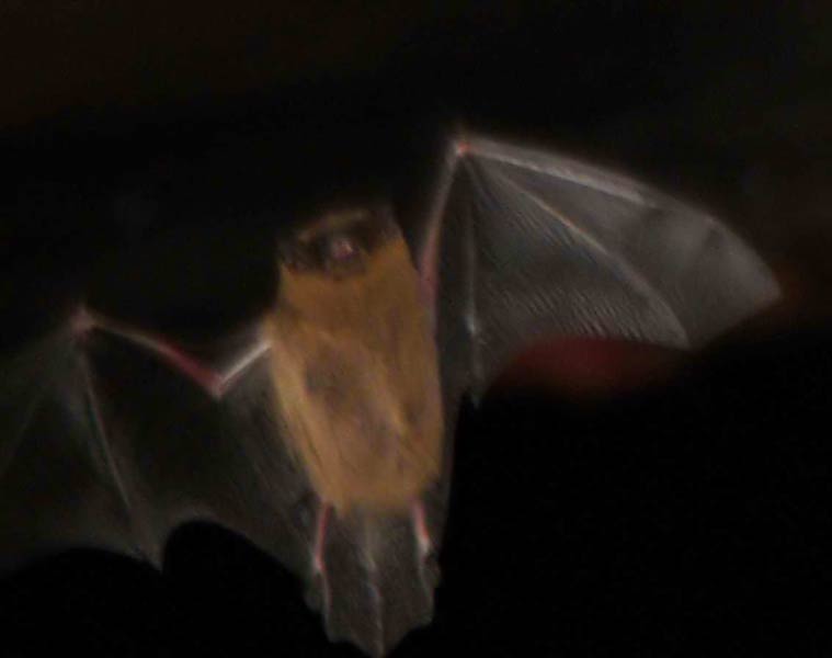 Hemminger Fledermaus mit offenem Mund, wohl rufend ...mehr über unsere → Fledermausarten im Glemstal |