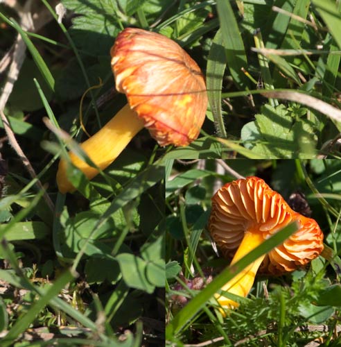 Pilze auf der Enzianwiese: schwärzender Saftling (Hygrocybe conica) Dieser Pilz wächst auf Halbtrockenrasen. Das würde passen. ...mehr über unsere → Pilze im Glemstal → Naturdenkmal "Enzianwiese" |