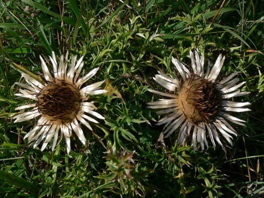 Es blühten ca. 100 Silberdisteln (Carlina acaulis) auf der Enzianwiese. Imme Hartmann meinte: "Die Silberdisteln sehen heute in der Sonne wirklich aus wie Silber" ...mehr über unsere |