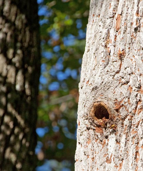 Hornissen haben in einer Spechthöhle im Heimerdinger Wald ein Nest gebaut ...mehr über unsere → Faltenwespen im Glemstal |