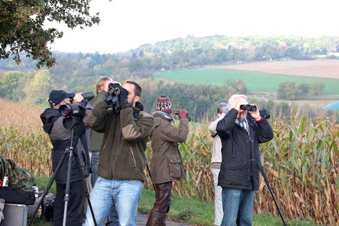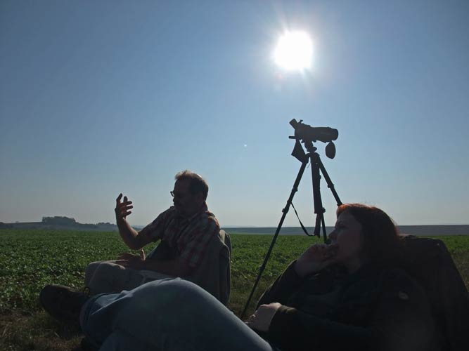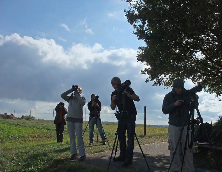 Vogelzugbeobachter auf dem Regenpfeiferacker in Hemmingen.