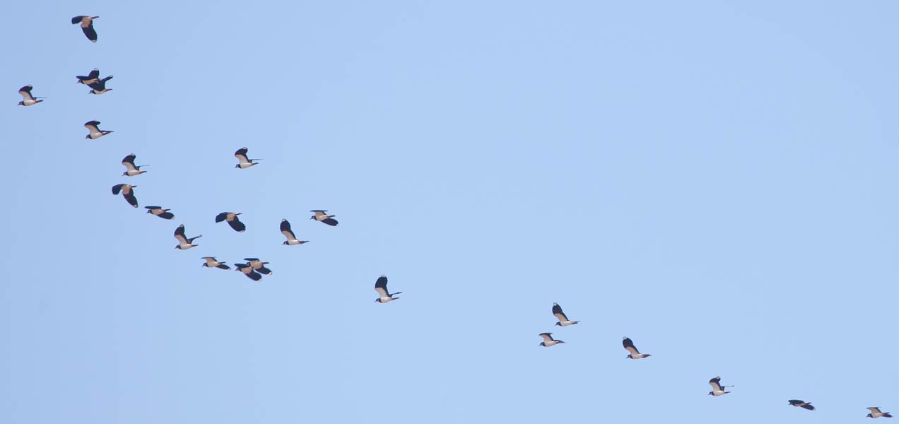 Heute haben wir diesen durchziehenden Trupp mit 23 Kiebitzen (Vanellus vanellus) beobachtet ...mehr über Sichtungen vom → Kiebitz im Glemstal |