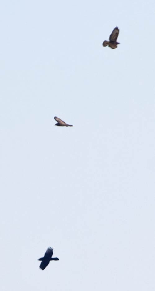 Kolkrabe ( in Thermik mit 2 Mäusebussarden) |