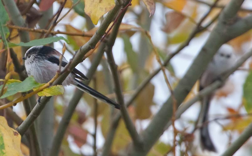 gezeigt. Rechts im Bild ein Tier mit einem weißen Kopf. ...mehr über → Schwanzmeisen im Glemstal |