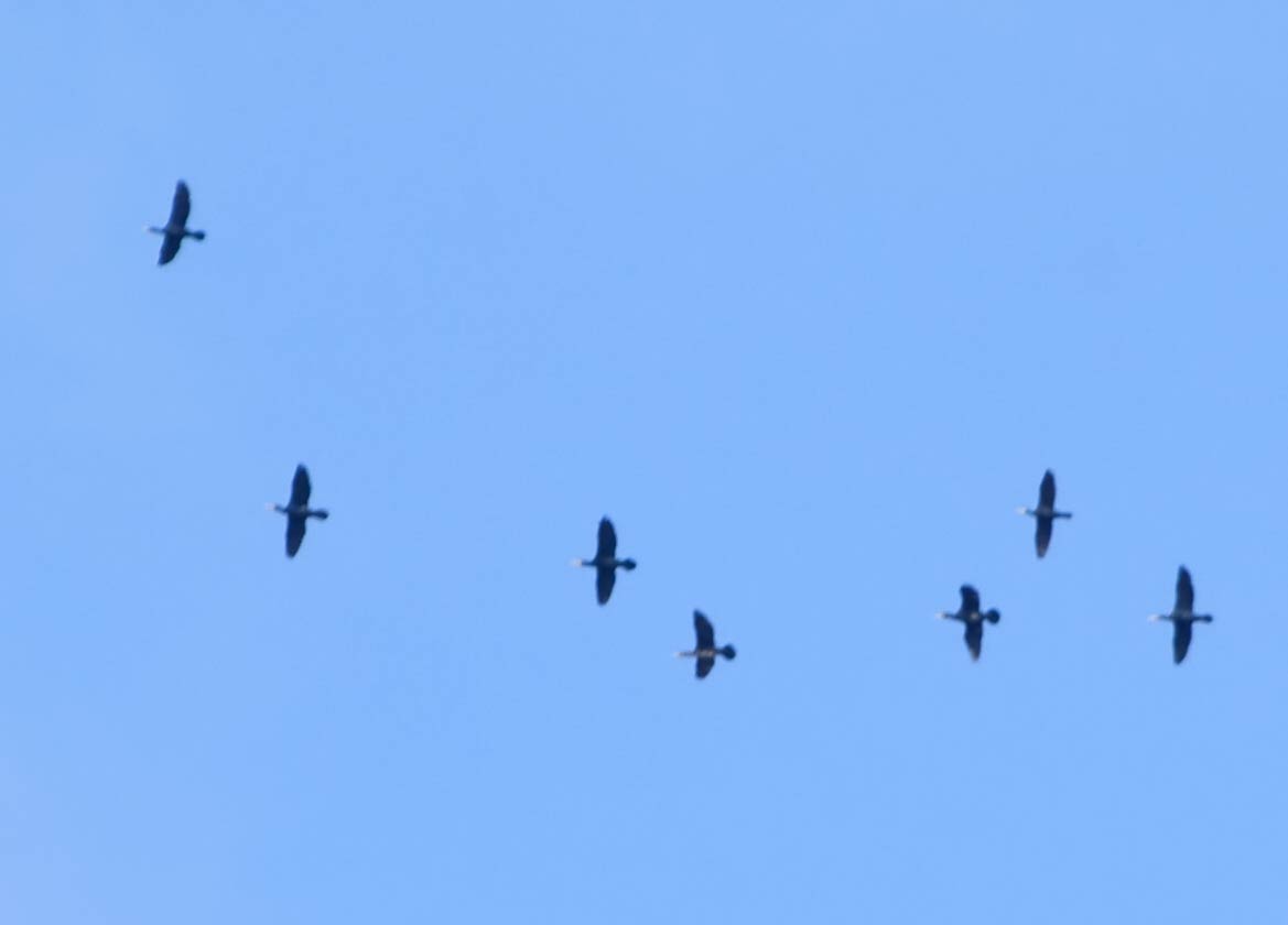 ein anderer durchziehender Trupp mit 7 Kormoranen (Phalacrocorax carbo) ...mehr über Sichtungen vom → Kormoran im Glemstal |