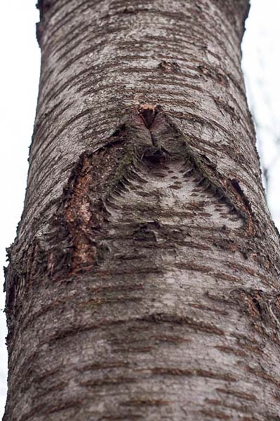 Wenn der Zapfen noch irgendwie ganz aussieht, aber wie zerhackt, zerfasert (der