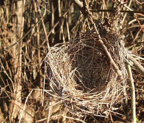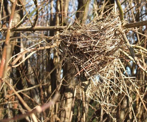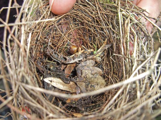 Manfred Herda bestimmt dieses Nest in einem Busch als Amselnest. Die Amsel