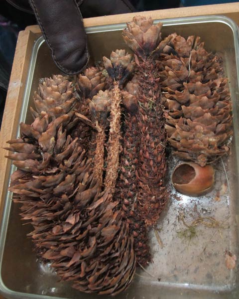 Manfred Herda´s Zapfensammlung abgenagter Fichtenzapfen Ich habe diese Zapfen als "Tannenzapfen" bezeichnet. Monika Borowka hat mich am 1.2.2012 darauf hingewiesen, dass es sich um Fichtenzapfen handelt. |