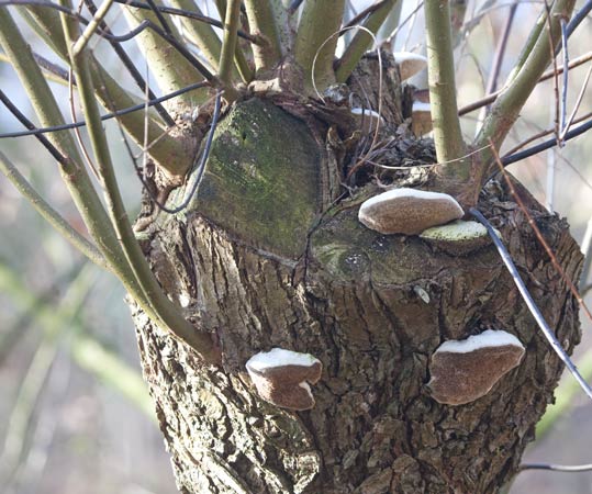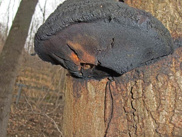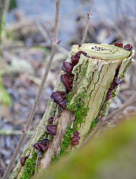 ein großer schwarzer Baumpilz am Räuschelbach. Noch unbestimmt. ...mehr über unsere → Pilze im Glemstal |