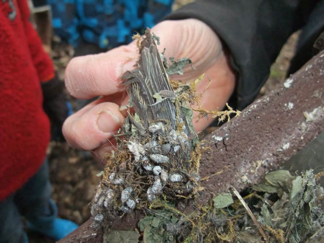 Conny Blazun entfernt das vorjährige Nest aus dem Nistkasten. Damit die Vögel wieder eine frische Bruthöhle haben. |