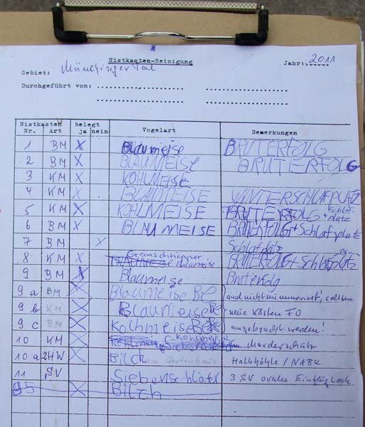 Von 15 Nistkästen im Gebiet von Conny Blazun sind 14 belegt gewesen in 2012.
