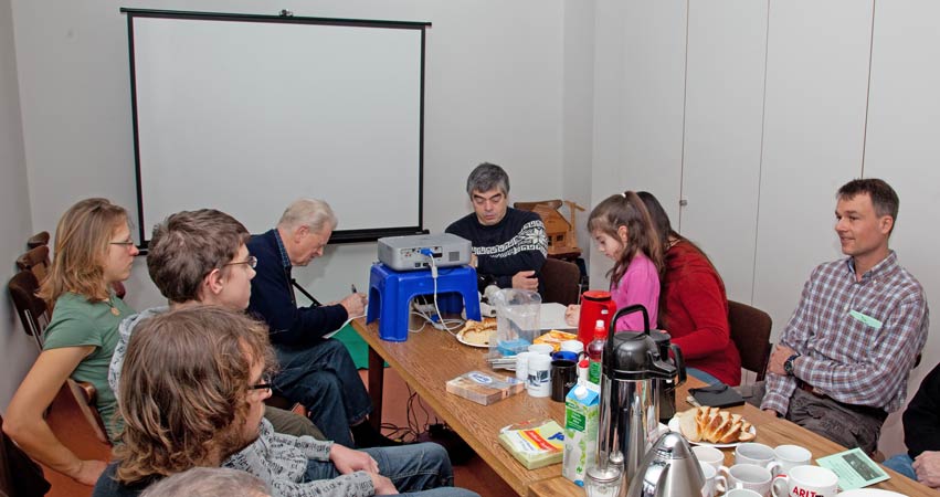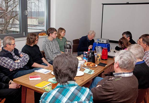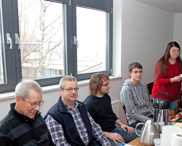 | Das Gründungstreffen der NABU Foto-AG in Hemmingen war gut besucht. Das Vereinszimmer in der Gemeinschaftshalle ist fast zu klein für die neue NABU Foto-AG. | Kerstin Cotrus hat Hefezopf zum Gründungstreffen mitgebracht | Alle Generationen sind vertreten beim Gründungstreffen der NABU Foto AG. Amrei Cotrus links macht schöne Fotos vom Hemminger Zeilwald |