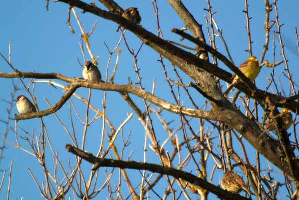 und Goldammern, Feldsperlinge und eine große Kette
