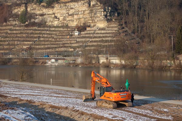 Die Zugwiesen am Neckar sind noch im Bau. Erstaunlich viele Wasservögel auf dem Neckar |
