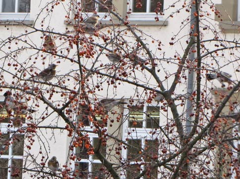 Markgröningen waren am 1.2.2012 ca. 300 Wacholderdrosseln und haben dort alle