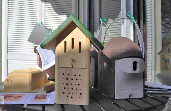 Helga Brehm zeigt Beispiele von Nisthilfen für Vögel, Wildbienen und andere Insekten ... mehr über unsere |