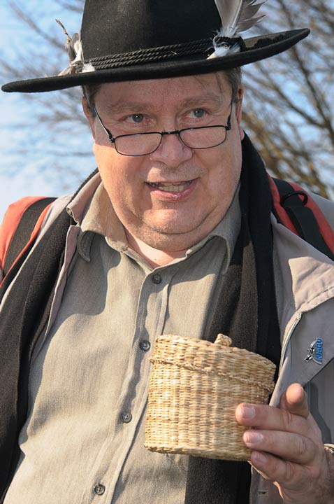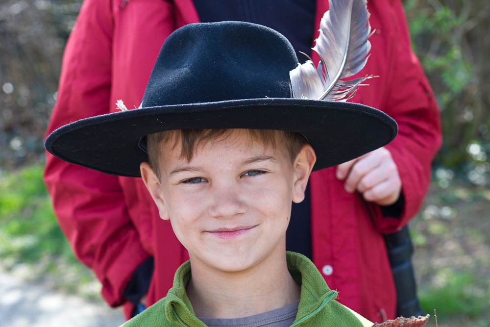 Lino Trinkmann ohne Kompetenzhut. Mit Klebkraut und mit Federn (vom Mäusebussard?) |