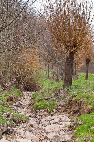 ausgetrockneter Döbach mit gut gepflegten Kopfweiden ... mehr über unsere → Baumarten im Glemstal |