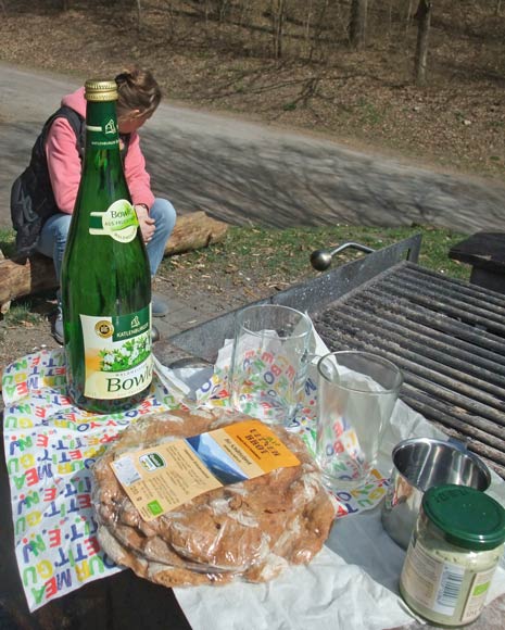 Monika Borowka hat Waldmeisterbowle, Brote und Bärlauchcreme mitgebracht für alle. Inklusive Gläser. Genial! |