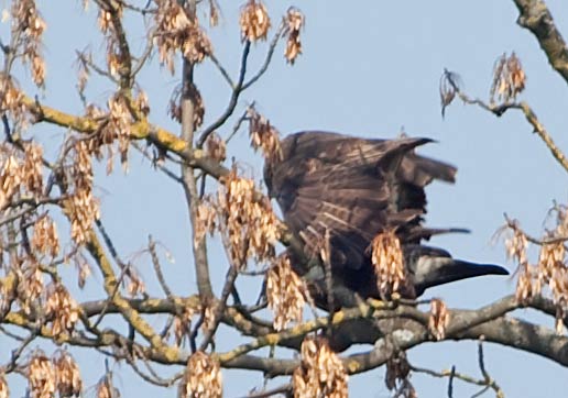 Er landet im Baum und auf ihr. ... mehr über unseren → Mäusebussard im Glemstal → Schloßpark in Hemmingen |
