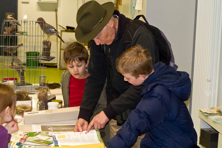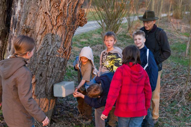 Der Vorsitzende vom NABU Schwieberdingen-Hemmingen Thomas Gölzer begrüßt Kinder