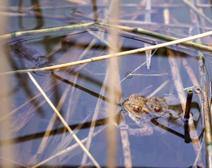 Frösche und Kröten gut unterscheiden kann: Frösche haben runde Pupillen,
