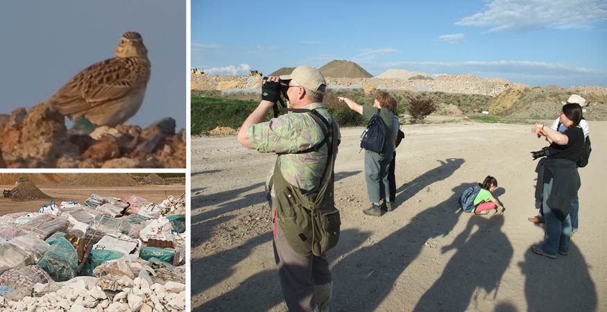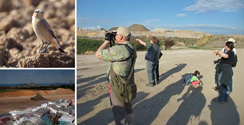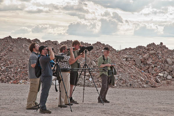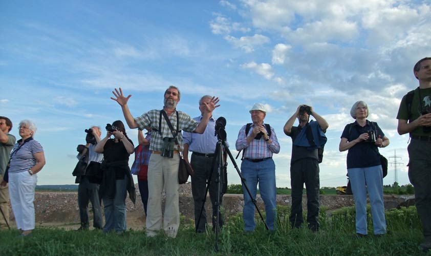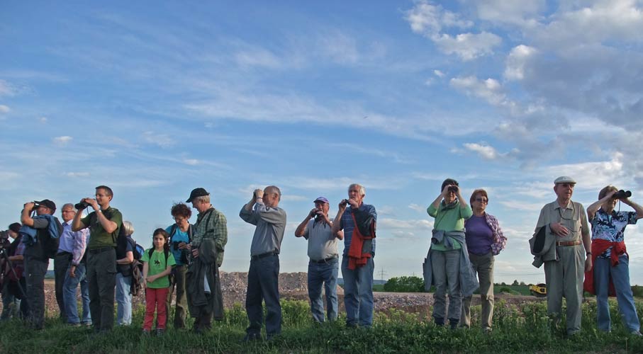 | Johannes Völlm (3.v.r.) zeigt uns Vögel in der Erddeponie |