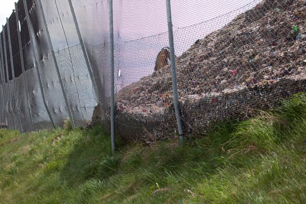 | Plastikabfälle neben dem "Zelt" am Zaun um die Erddeponie | Plastikfetzen am Zaun der Erddeponie werden durch dieses Netz in der Deponie gehalten | Plastikfetzen liegen hier auf dem Weg neben dem "Zelt" außerhalb der Deponie und auf dem angrenzenden Acker | Die Markgröninger Schafherde war mehrere Tage auf der Erddeponie. Nicht ganz optimal für die Bodenbrüter |