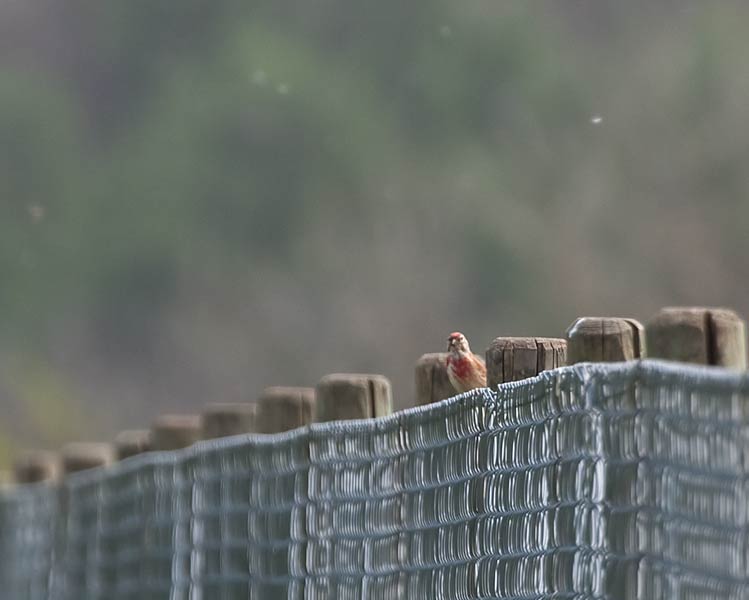 Rotraut Völlm hat einen Trupp von Bluthänflingen auf dem Zaun der Erddeponie