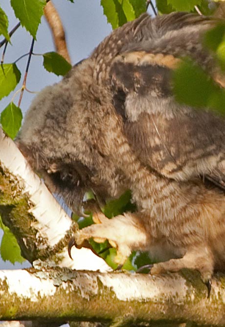 "Daumenlutscher" Das große Waldohreulenkind knabbert an seiner Kralle |