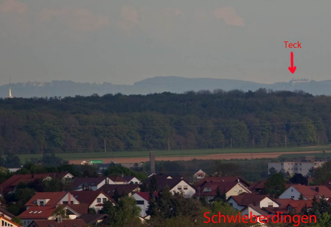 | Die Sicht war sehr klar | von der Deponie aus sehen wir die Burgruine Teck in der Schwäbischen Alb (46 km Luftlinie) |