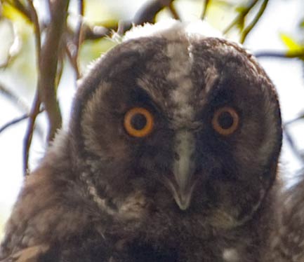 Eulenkind Nr. 5 schaut uns an. (die Eule in der Tanne) ... mehr über unsere → Waldohreulen im Glemstal |