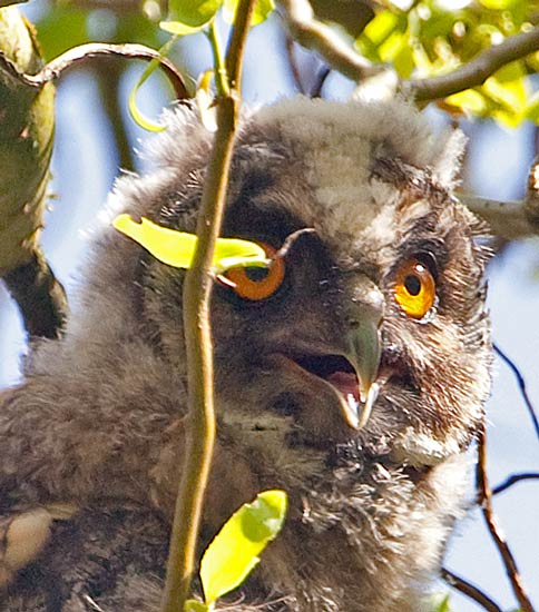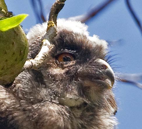 Dieses Eulenbaby ist ganz schön wuschelig. Hat sogar schon winzige Öhrchen