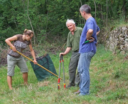 Die weitere Trockenmauerpflege erfolgt durch den NABU mit Spaten, Rebschere,
