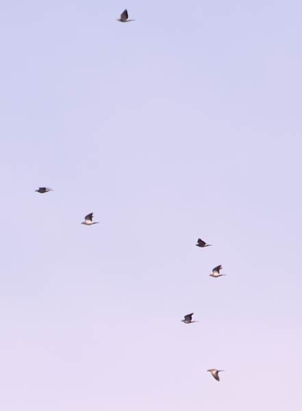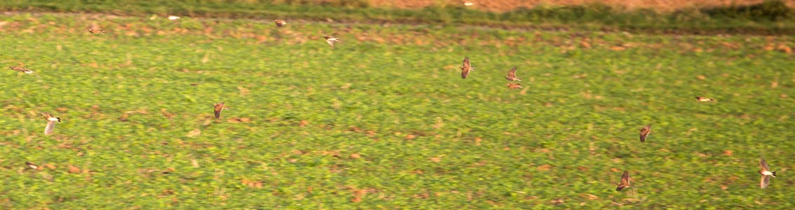 Ein Riesen-Trupp Feldlerchen über dem Regenpfeiferacker (Blick von der Fichte nach