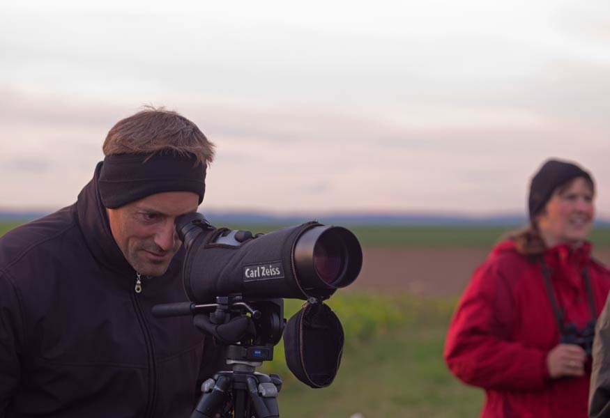 Vogelzugbeobachter vor Sonnenaufgang unterwegs zum Regenpfeiferacker ... mehr über unseren → Regenpfeiferacker bei Hemmingen |
