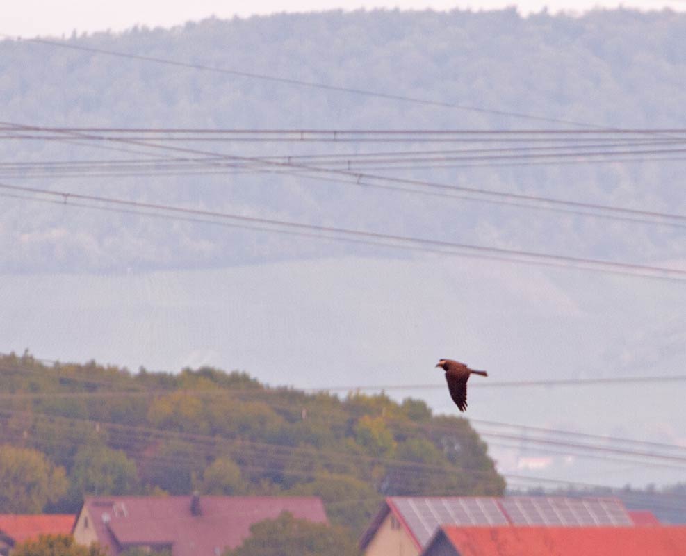 eine einzelne junge Rohrweihe über dem Gagerbach fliegt nach Süden (Danke an Jochen Völlm für die Altersbestimmung) ... mehr über Sichtungen der → Rohrweihe im Glemstal → Gagerbach in Schwieberdingen |