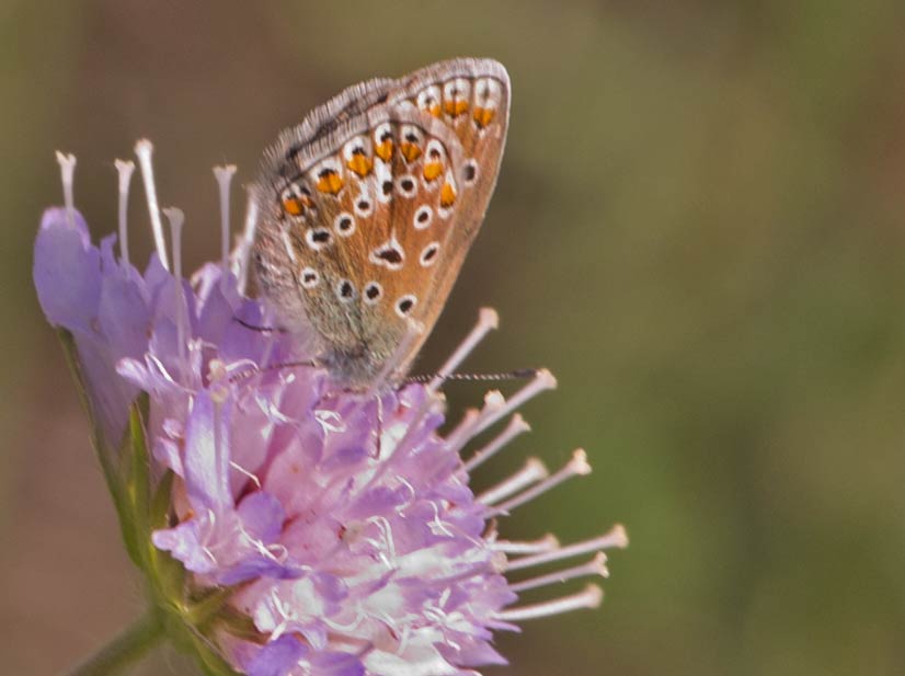 ein Bläuling auf Wiesenwitwenblume: Hauhechel-Bläuling (Polyommatus icarus) ... mehr über unsere → Bläulinge im Glemstal