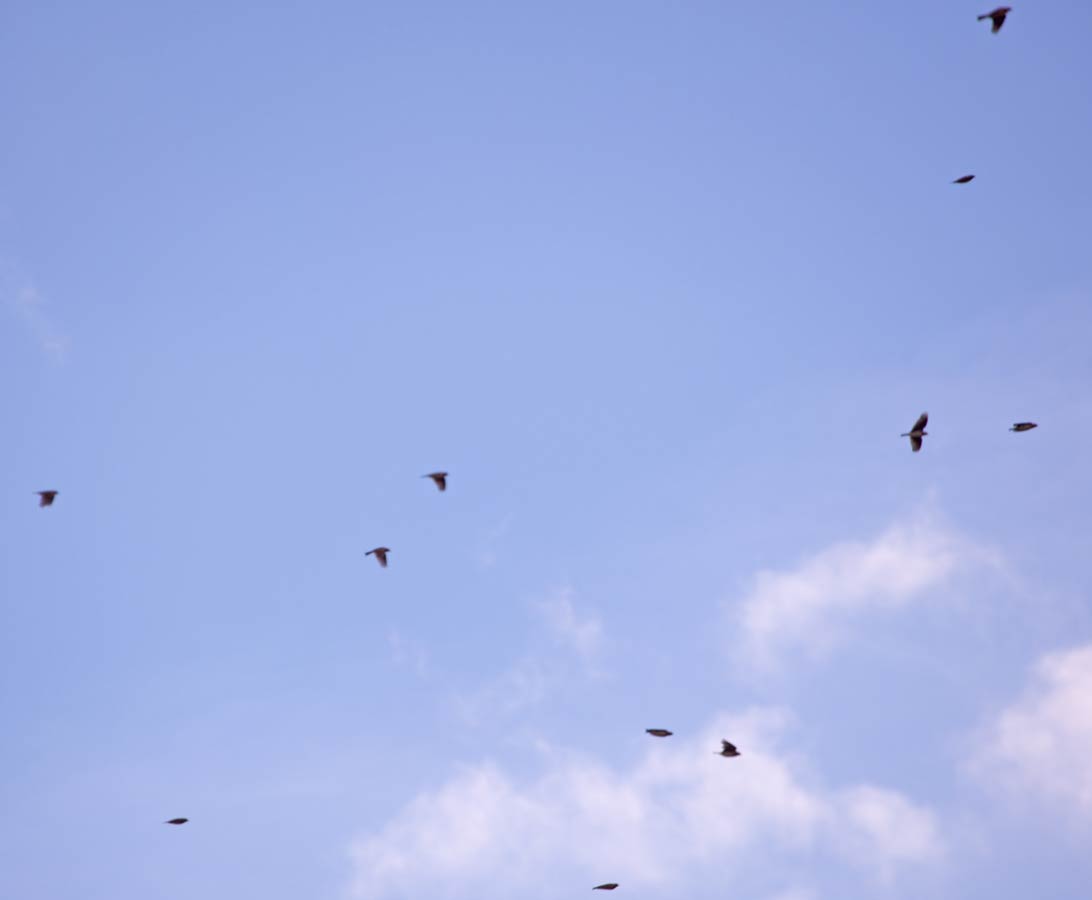 immer wieder zogen Trupps von ziehenden Rauchschwalben in niedriger Höhe