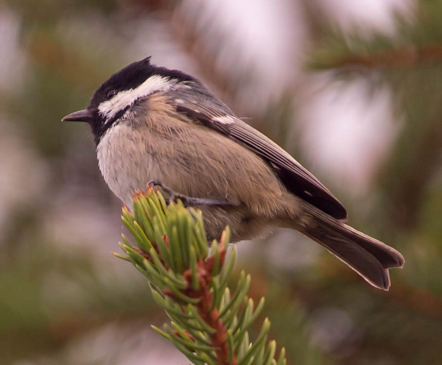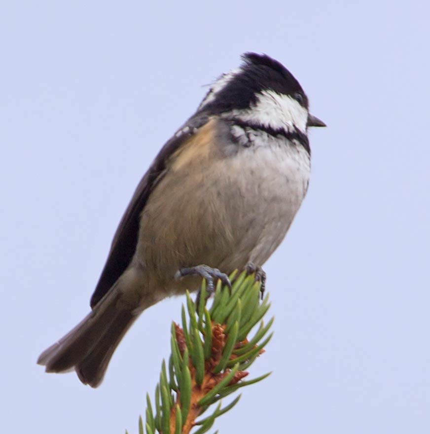 von der Seite sieht man den weißen Nackenstreifen der Tannenmeise. Hilde