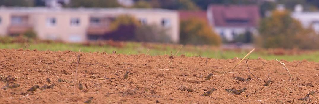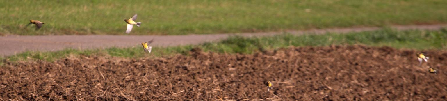 ein Trupp Goldammern beim Abflug vom Acker (conf. Jochen Völlm in 3/2013) ... mehr über unsere → Goldammer im Glemstal |