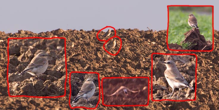 Jochen Völlm fotografiert mit Spektiv und Handy: Steinschmätzer auf dem Regenpfeiferacker ... mehr über Sichtungen vom → Steinschmätzer im Glemstal → Regenpfeiferacker bei Hemmingen |