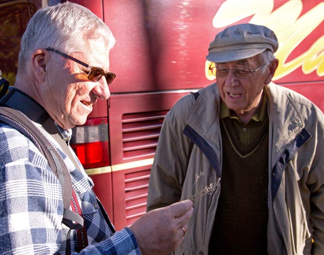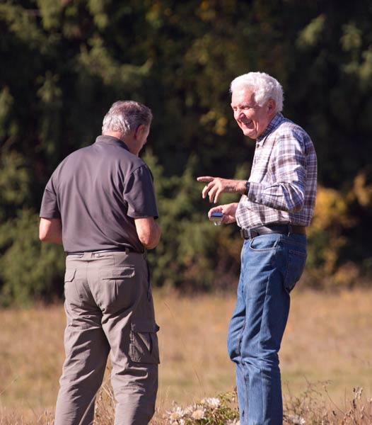 2009: 10 km nordwestlich des Glemstals ► Kreuzbachtal bei Aurich am 25.7.2009 mit Fritz Plachetta vom Naturkundeverein Ludwigsburg mit behaarter Karde (links) |