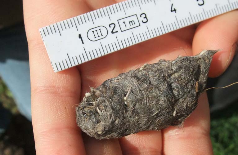 Lino Trinkmann hat ein 5cm großes Eulen-Gewölle entdeckt. Waldohreule? ... mehr über unsere → Waldohreulen in Hemmingen |