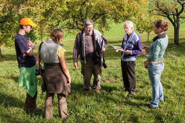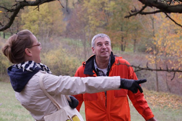 Auf der NABU Streuobstwiese | Inspektion der NABU Streuobstwiese | Diskussion über Möglichkeiten der Biotopverbesserung |