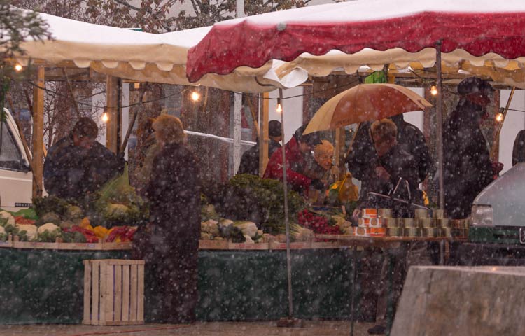 winterlichem Weiß. Es schneit den ganzen Tag.
