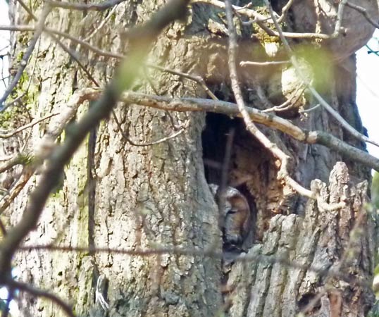 14. April 2012 in Korntal-Münchingen ►Waldkauz döst vor seiner Höhle im Withauwald |