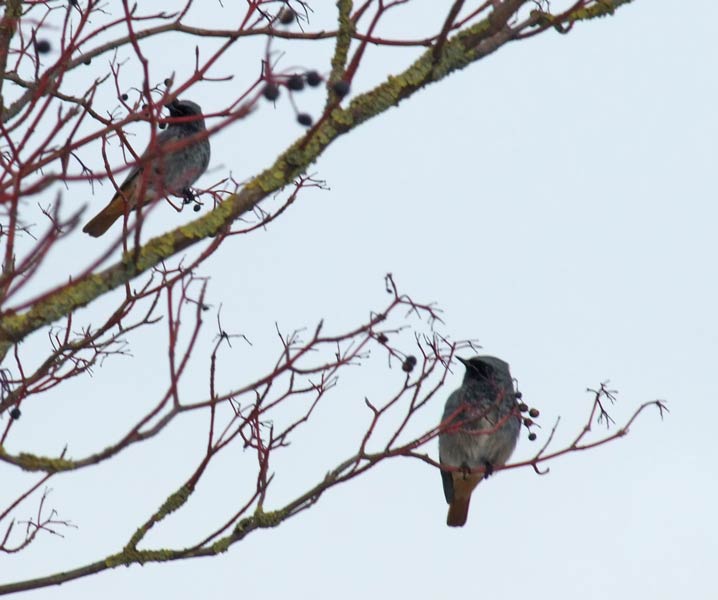 Hausrotschwanz (Phoenicurus ochruros), zwei Männchen ... mehr über den → Hausrotschwanz im Glemstal |